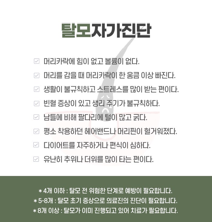 탈모는 조기 발견과 치료가 매우 큰 차이를 만들 수 있습니다. 머리카락은 단기간에 변화하지 않기 때문에, 오늘의 선택과 관리가 6개월 뒤, 1년 뒤의 내 모습에 직접적인 영향을 줍니다. 약물 치료든, 시술이든, 혹은 생활습관의 변화든 중요한 것은 ‘지금’ 시작하는 것입니다. 그 작은 결심이 자신감의 회복, 삶의 질 개선, 그리고 내면의 건강한 자아 회복으로 이어질 수 있습니다. 감사합니다.