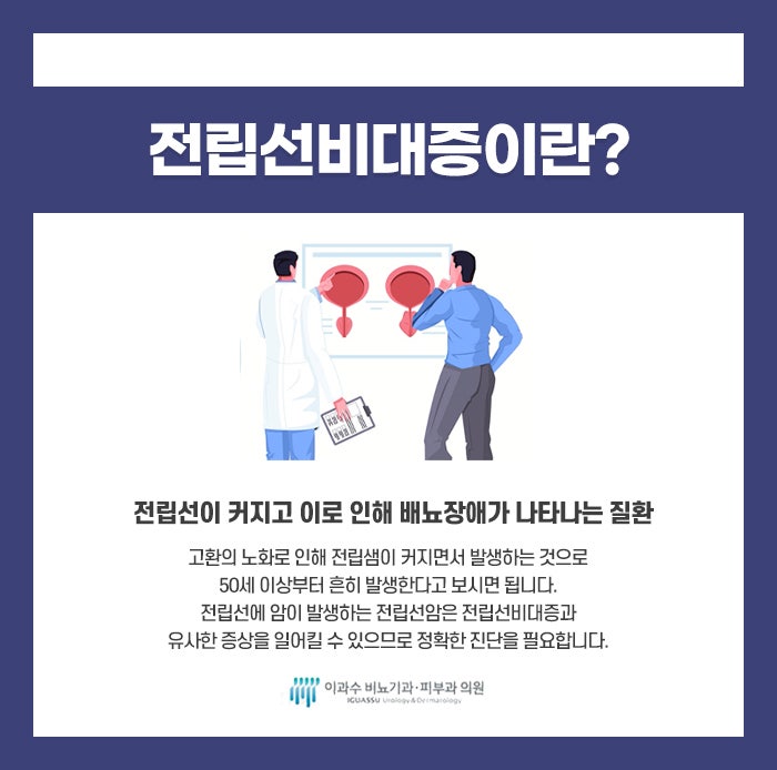 전립선비대증은 중년 이상의 남성에게 흔하게 발생하는 질환으로, 나이가 들수록 발병률이 높아지는 특징을 가지고 있습니다. 이 질환은 전립선이 비정상적으로 커지면서 요도를 압박하고, 이로 인해 배뇨에 다양한 불편감을 초래하게 됩니다. 전립선은 남성 생식기관 중 하나로 방광 아래에 위치하며 요도를 둘러싸고 있는 조직입니다. 이 부위가 비대해지면 요로계 기능에 영향을 주게 되며 삶의 질을 저하시키는 주요 원인 중 하나로 작용할 수 있습니다. 전립선비대증은 단순한 노화 현상으로 치부되기도 하지만, 증상의 정도에 따라 적극적인 치료가 필요한 질환이라고 남양주비뇨기과에서는 말합니다.