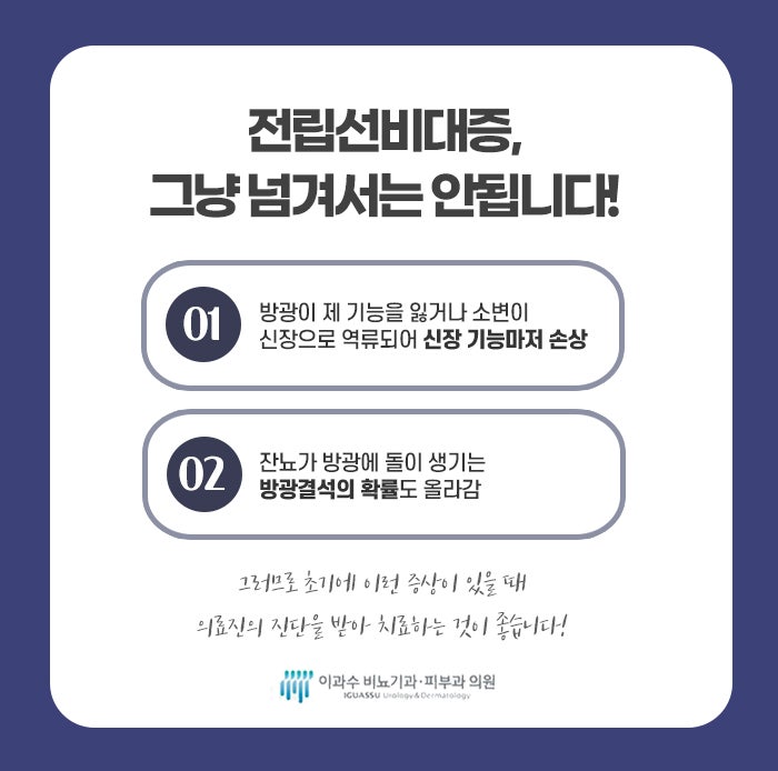 최근에는 리줌시술과 같은 새로운 치료법이 등장하면서 기존의 약물치료나 수술보다 환자의 부담을 줄이고, 증상을 개선할 수 있는 기회를 제공하고 있습니다. 리줌시술은 간편하게 진행될 수 있으며, 부작용이 적고 회복이 빠른 만큼 적극적으로 고려해볼 수 있는 치료법입니다. 무엇보다도 중요한 것은, 증상이 나타났을 때 부끄럽거나 불편하다는 이유로 방치하지 않고, 조기에 진단받고 본인의 건강 상태에 맞는 치료법을 선택하는 것입니다. 전립선비대증은 조기에 적절히 관리하면 삶의 질을 충분히 회복할 수 있는 질환이므로, 예방과 치료에 대한 관심을 놓지 말고 꾸준히 관리해나가는 자세가 필요합니다.