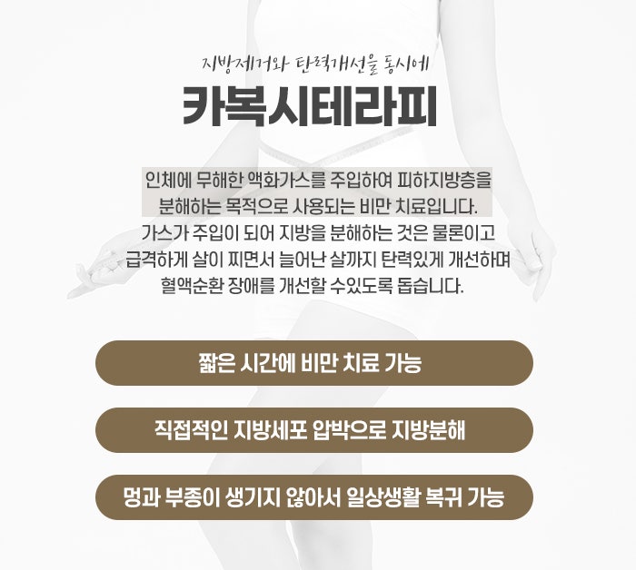 구리다이어트를 시작해야 하는 시점은 개인마다 다르지만, 체질량 지수가 25 이상이거나 허리둘레가 남성은 90cm, 여성은 85cm를 초과하는 경우에는 건강 위험 신호로 간주되므로 체중 감량을 적극적으로 고려해야 합니다. 또한 체지방률이 높거나 근육량이 적어 체형 불균형이 심한 경우에도 다이어트와 함께 체형 개선이 요구됩니다. 다이어트 과정에서 지방을 줄이고 건강을 유지하기 위해 카복시테라피와 메조테라피가 유용한 보조 치료법으로 주목받고 있습니다. 카복시테라피는 피부 아래에 이산화탄소를 주입하여 혈액순환을 개선하고 지방 분해를 촉진하는 방법입니다. 이산화탄소가 조직에 공급되면 혈관이 확장되고, 산소 공급이 증가하여 지방세포의 대사가 활발해집니다.